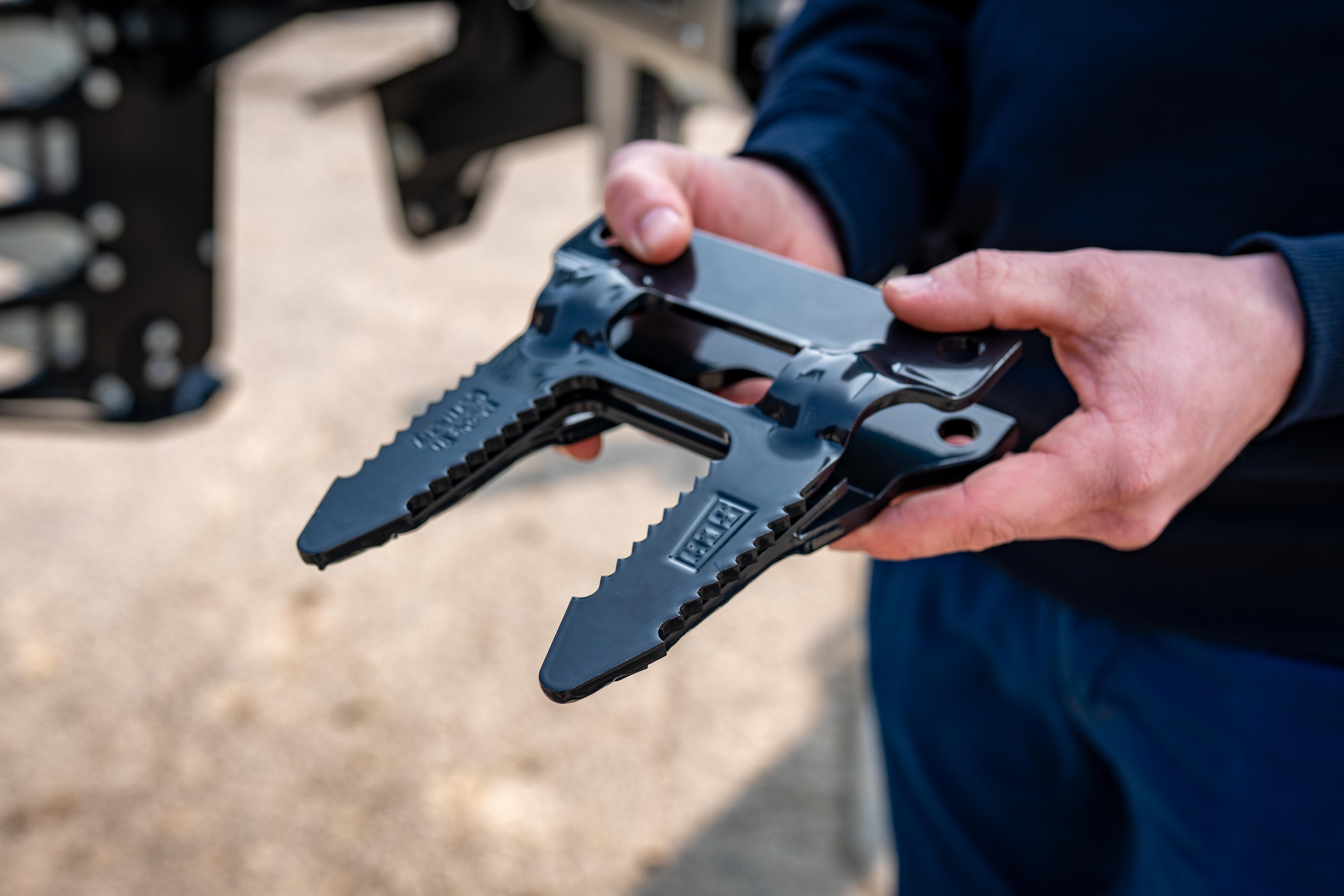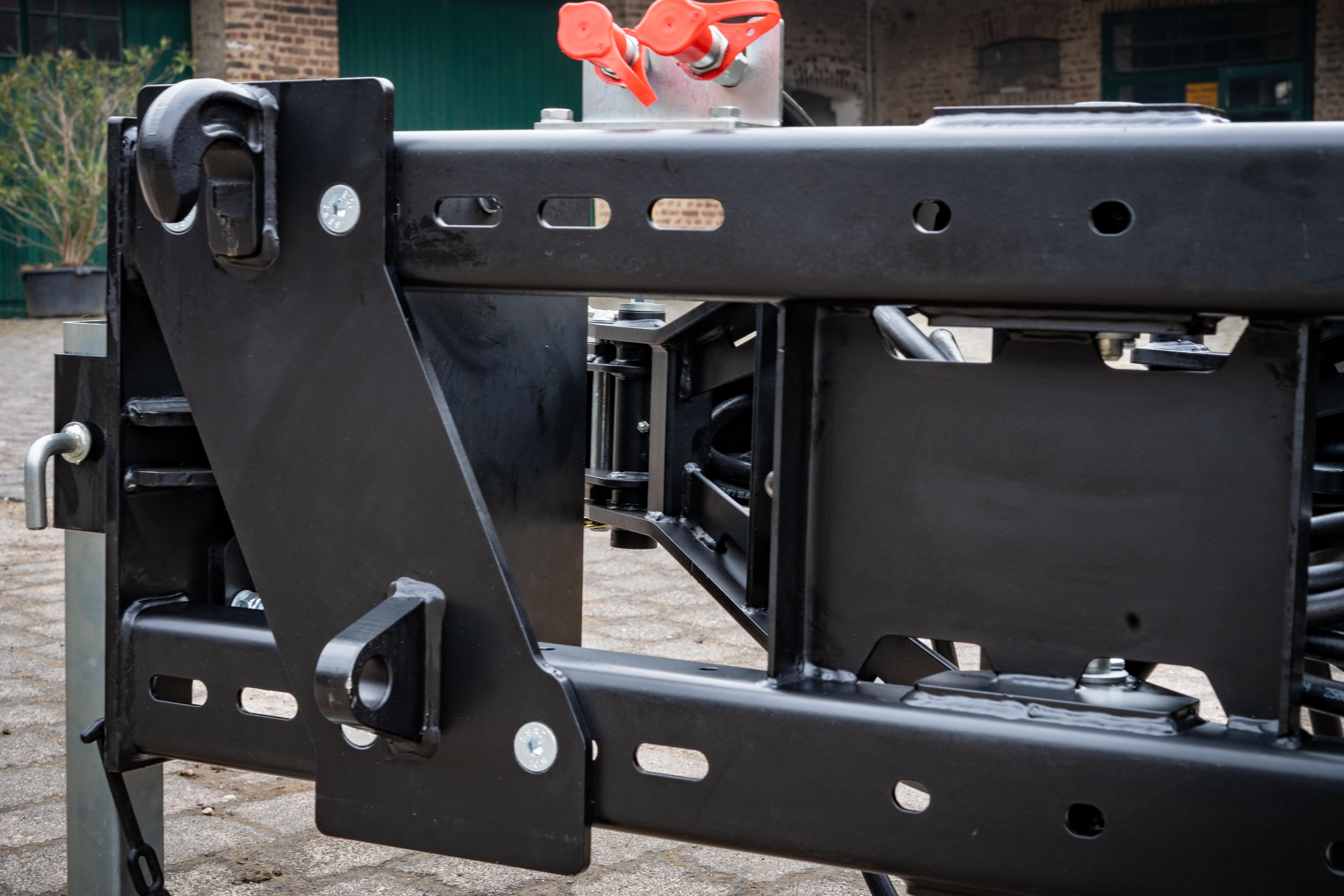Durch die geschützt im Rahmen verlegten Hydraulikleitungen und den